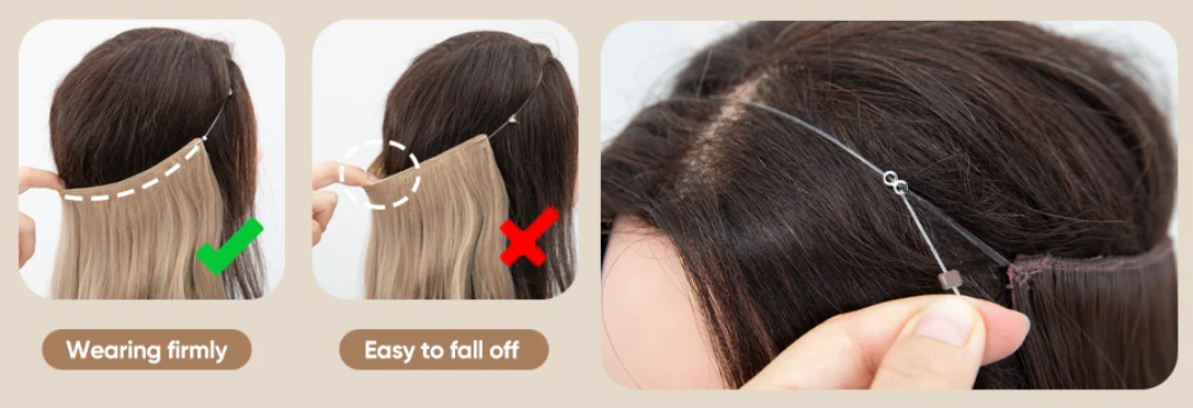 This positioning helps keep the Halo stable and allows your natural hair to cover the wire.