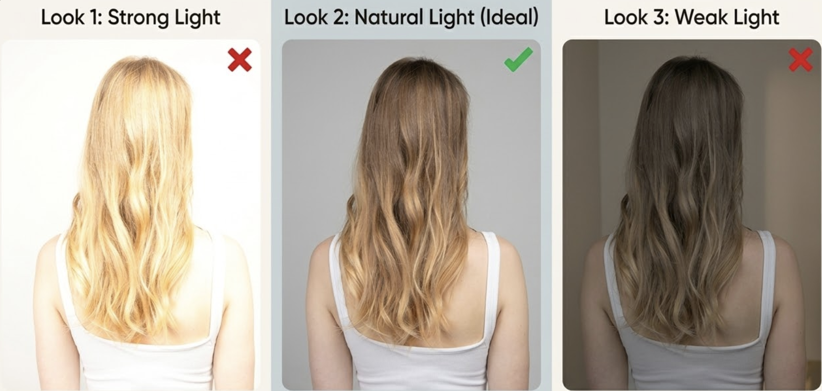 Natural lighting shows your hair color most accurately.